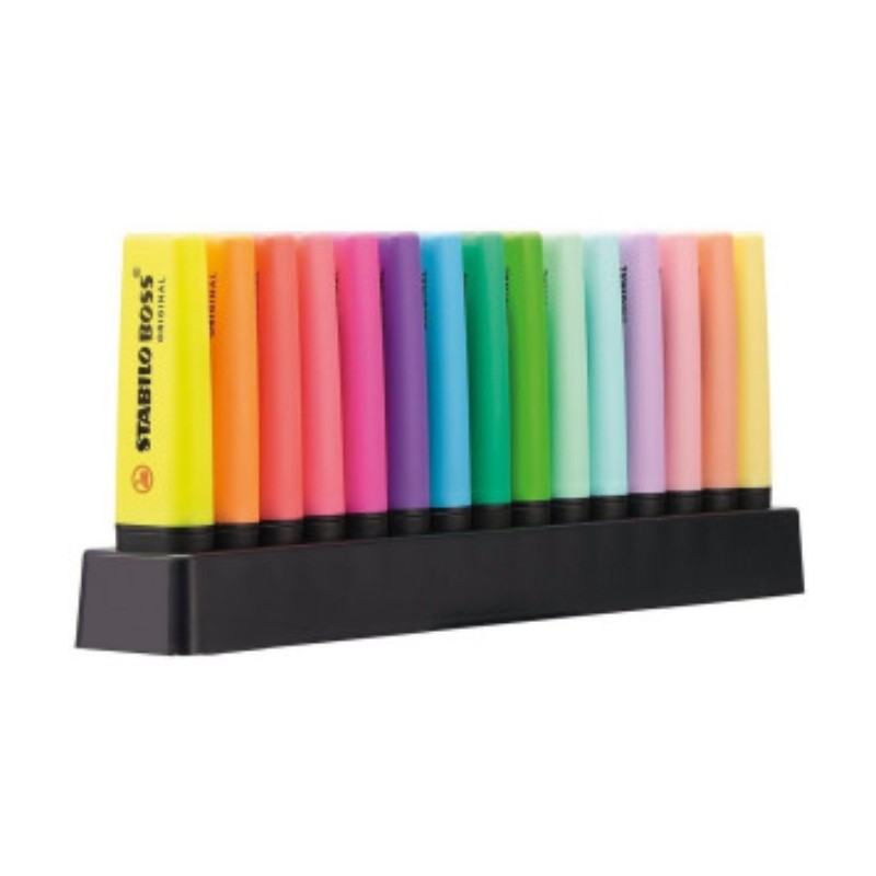 Desde su creación en 1971, el STABILO BOSS ORIGINAL se ha convertido en un favorito dentro del escritorio y continua siendo el fluorescente más vendido en Europa. Ofrece 4 horas de protección antisecado para estar concentrado al 100%, es recargable y está disponible en 9 colores fluorescentes y 6 pastel.