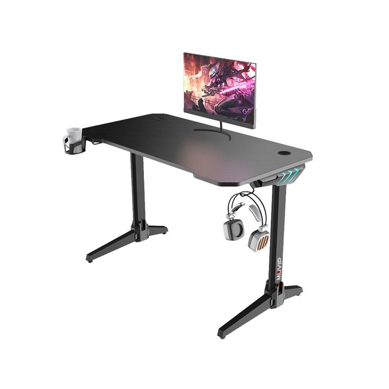 • Gran superficie de juego. Un diseño optimizado, muy espacioso (113 x 60 cm), que permite la colocación cómodamente del setup, bien en su superficie superior o, si se prefiere, en la inferior, gracias al amplio espacio que garantiza la importante comodidad de las piernas para las largas partidas.