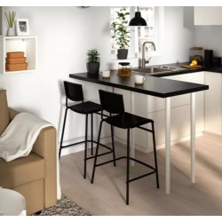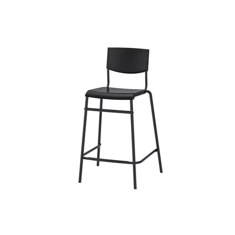 Perfecto para barras de cocina, cafeterías o áreas de trabajo, su diseño minimalista y su acabado en negro mate combinan fácilmente con diferentes estilos decorativos. Además, su altura es ideal para mesas o barras de altura media, ofreciendo un soporte cómodo y estable.