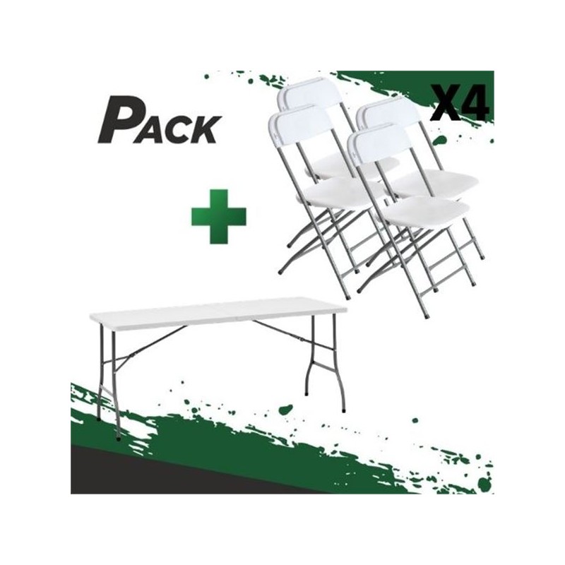 Pack compuesto por MESA DE RESINA PLEGABLE 152X70X74CM + 4 SILLAS RESINA PLEGABLE 80X50X45CM